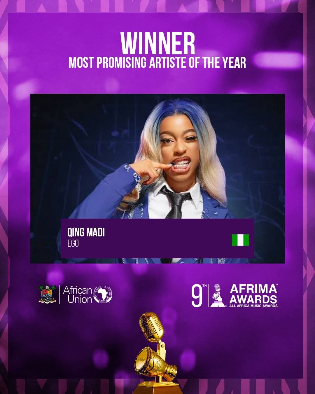1️⃣6️⃣ Artiste le plus prometteur : QING MADI — « EGO » 🇳🇬
