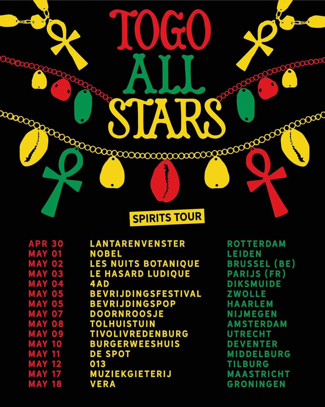 Ils sont ce soir à Bruxelles, demain à Paris, les Togo All Stars présentent actuellement en Europe leur nouvel album intitulé « Spirits ». Il se pourrait bien que nous les accueillions bientôt sur nos ondes 😉 Si vous êtes à Paris ce vendredi, rendez-vous ici 👉 https://www.lehasardludique.paris/concert/2024-02-09/togo-all-stars