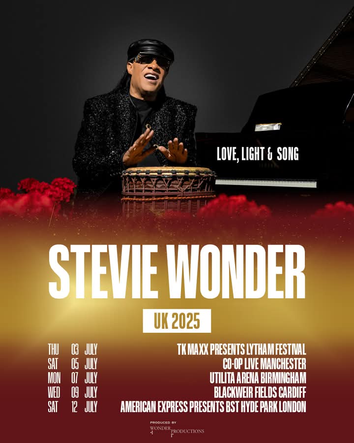 Le légendaire Stevie Wonder a annoncé de nouvelles dates de concerts au Royaume-Uni pour l’été 2025. Les concerts LOVE, LIGHT & SONG de Stevie Wonder se dérouleront à Lytham, Manchester, Birmingham, Cardiff et Londres.
