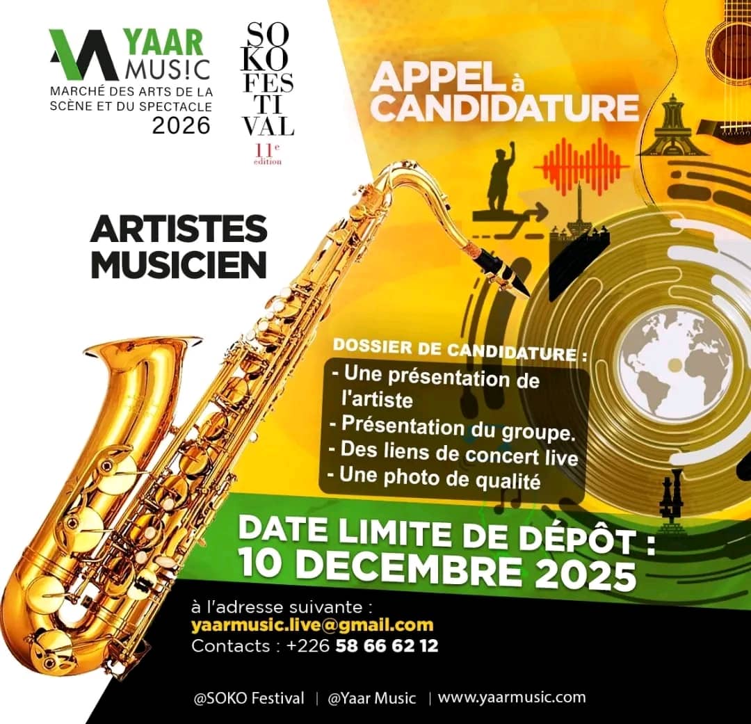 Le YAAR MUSIC, marché des arts de la scène et du spectacle, en partenariat avec la 11ᵉ édition du SOKO Festival, ouvre son appel à candidatures pour sélectionner les artistes qui prendront part à l’aventure 2026.
