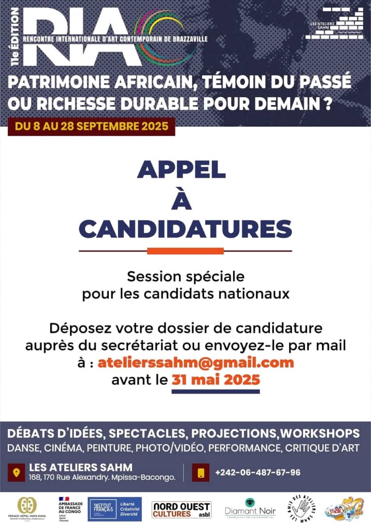 Les candidatures nationales se poursuivent jusqu’au 31 mai 2025, contrairement à celles des internationaux clôturées le 31 mars 2025. Ne manquez pas cette chance de faire partie d’une communauté artistique dynamique et de contribuer à la réflexion sur le patrimoine africain en tant que ressource pour l’avenir.