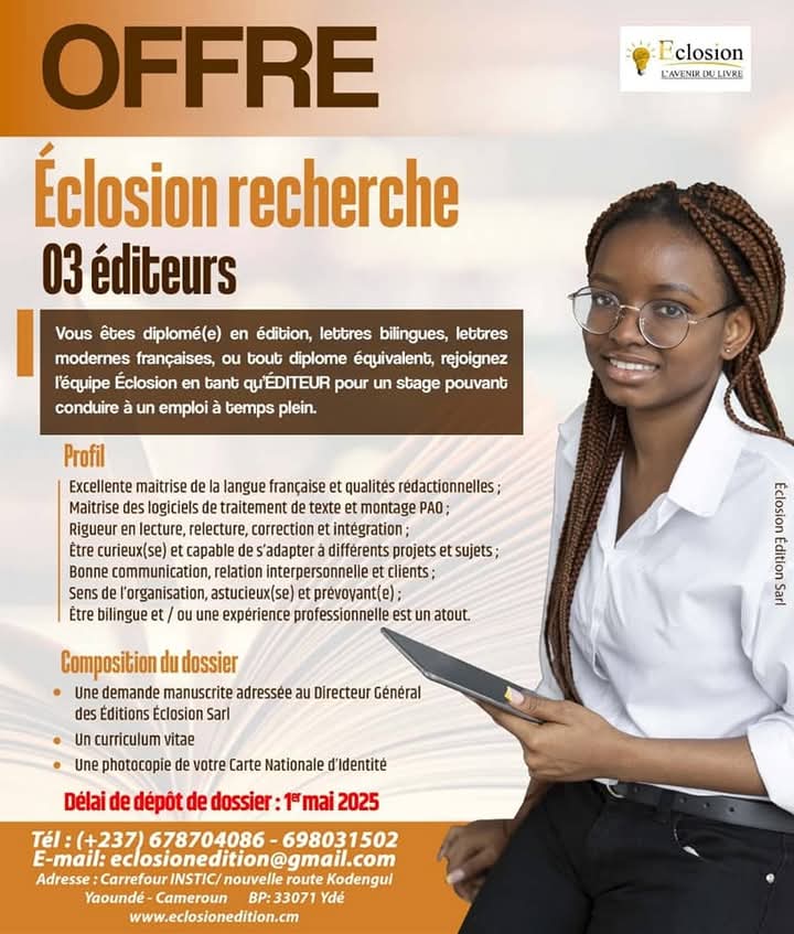 Vous pouvez devenir É𝗱𝗶𝘁𝗲𝘂𝗿 chez Eclosion.