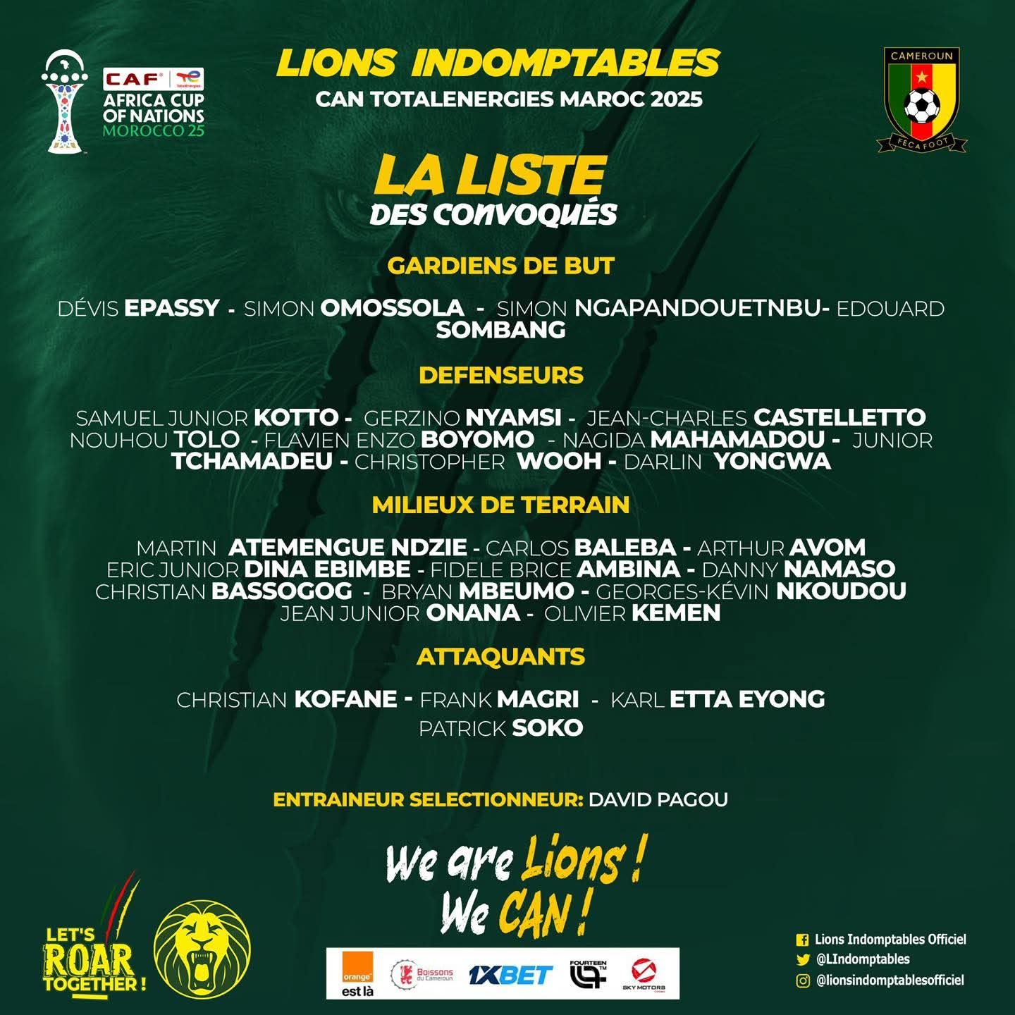 C’est officiel on connaît désormais la liste des 28 joueurs qui iront défendre les couleurs du Cameroun à la Coupe d’Afrique des Nations Total Énergies Maroc 2025.