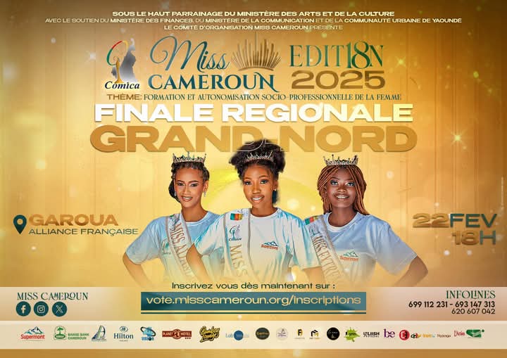 Nous sommes ravis d’annoncer que la finale régionale de Miss Cameroun au Grand Nord aura lieu le samedi 22 Février 2025 à Garoua !