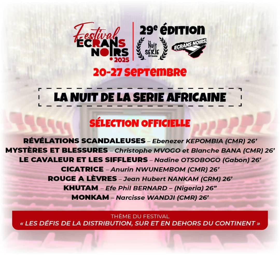 Dans le cadre de la 29ᵉ édition du Festival Écrans Noirs, qui se tiendra du 20 au 27 septembre 2025, la Nuit de la Série Africaine propose cette année une sélection variée de séries à découvrir absolument.