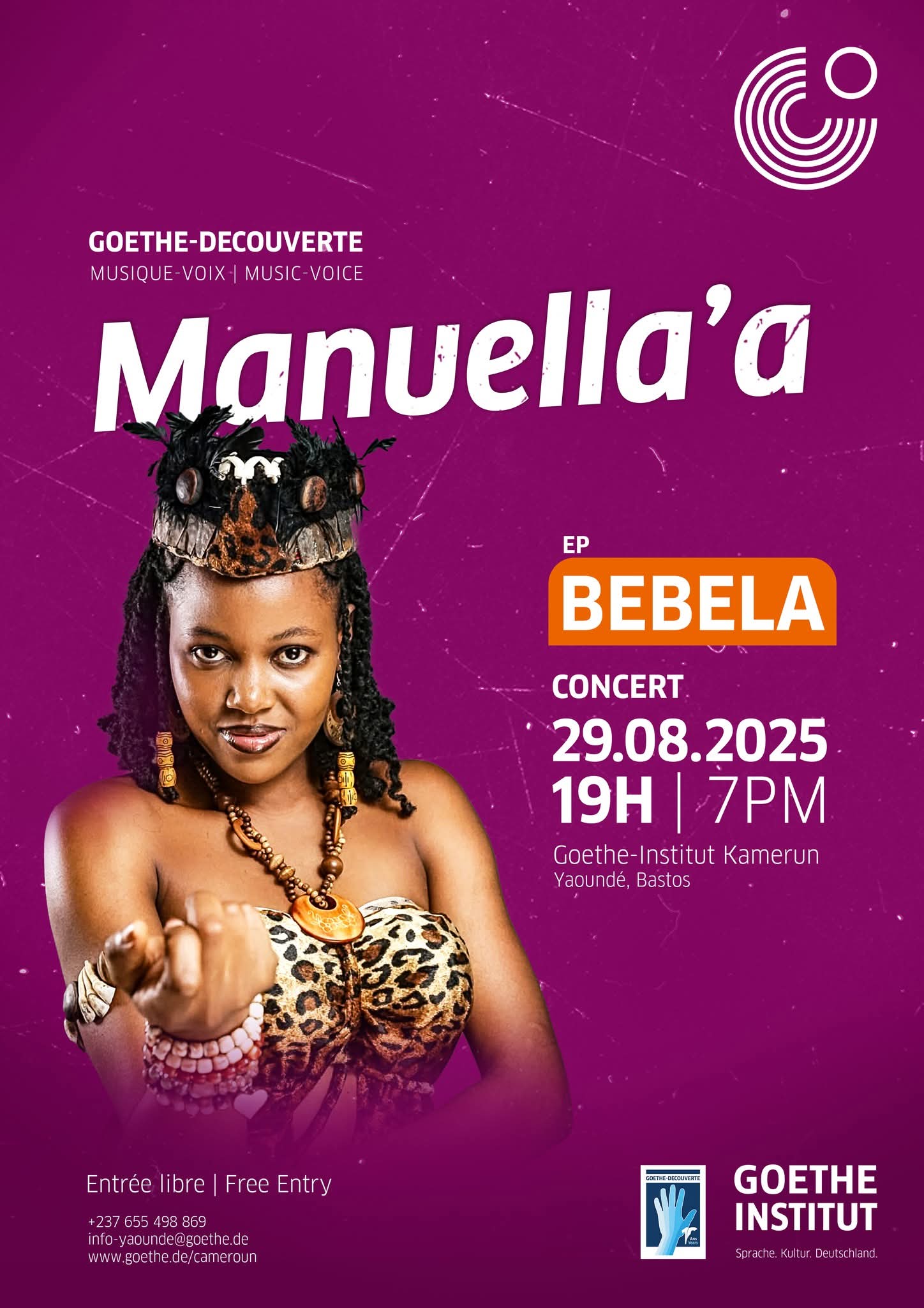 Le Goethe-Institut Kamerun présente le concert « 𝐁𝐄𝐁𝐄𝐋𝐀 » de Manuella’a , Goethe-Découverte 2025 catégorie musique voix.
