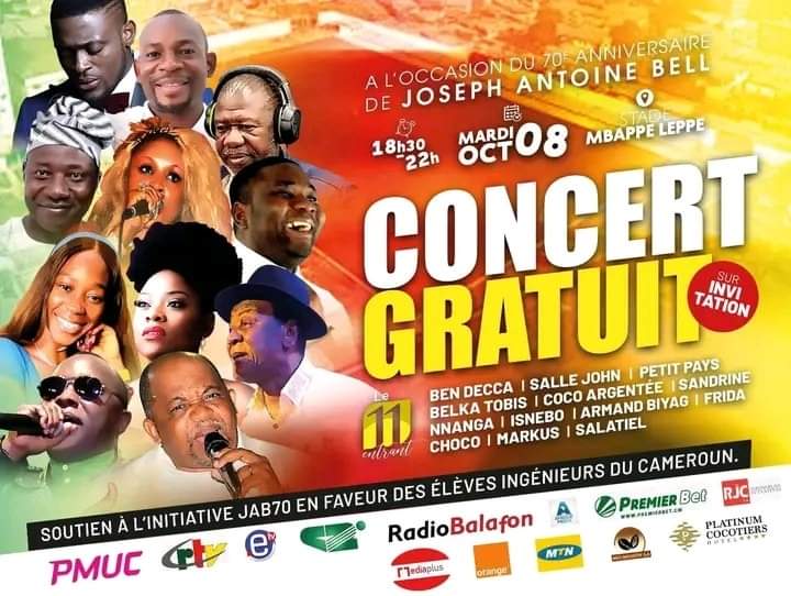 L’actuel Directeur de l’ONIES organise un concert gratuit à l’occasion de son 70 ème anniversaire. Il a réuni des artistes de renoms pour cet événement qui se tiendra aujourd’hui entre 18H – 22H au Stade Mbappe Lepe. Si toutefois vous êtes dans la capitale économique faites-y un tour.