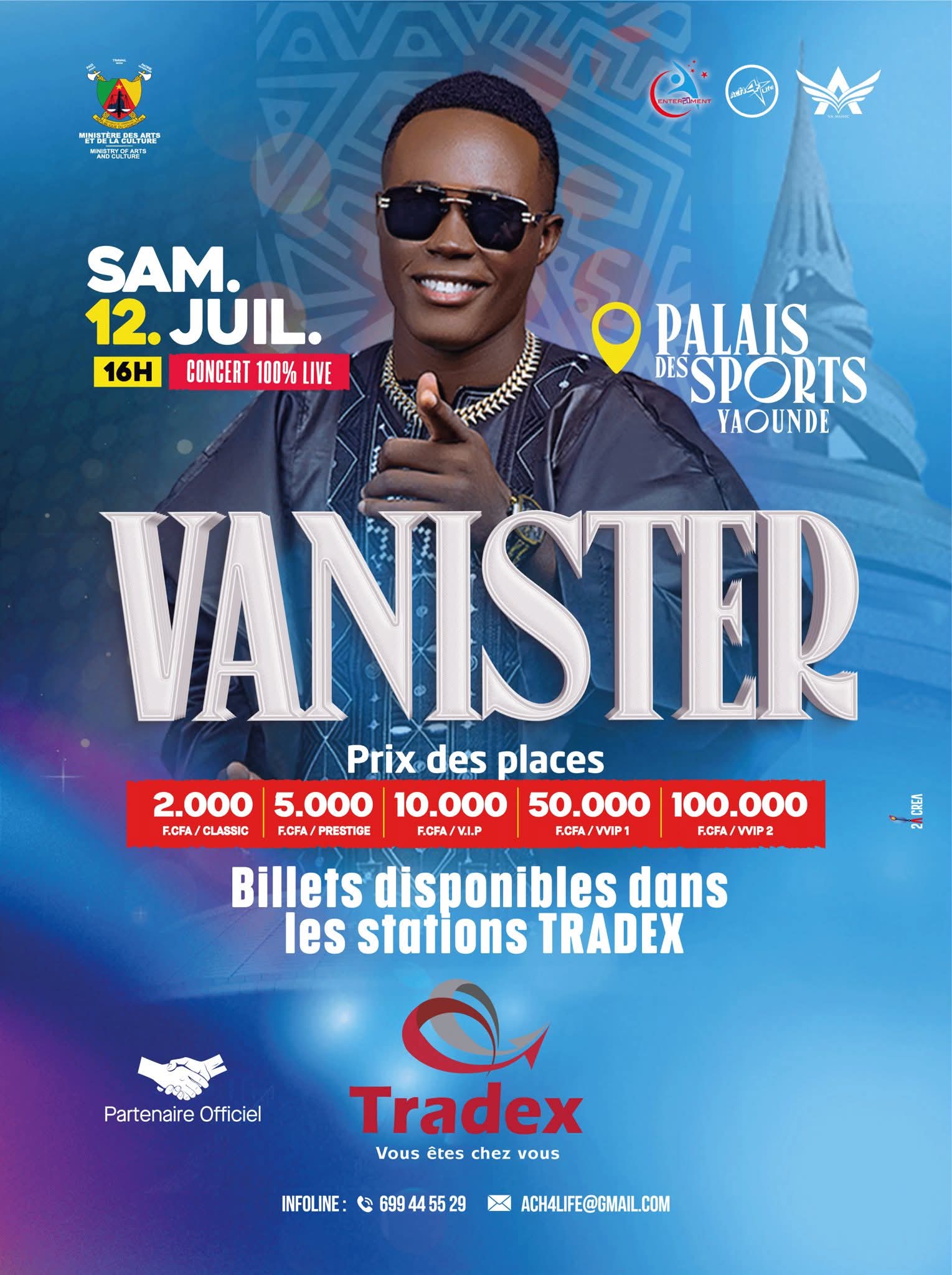 À quelques semaines de son concert evénement. L’artiste chanteur Vanister Enama dévoile la grille tarifaire de la billetterie et les lieux des ventes.