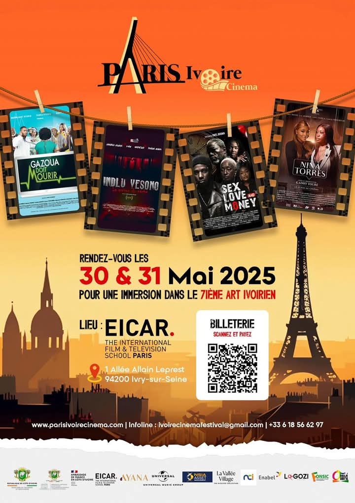 Le festival Paris Ivoire Cinéma est annoncé les 30 et 31 mai 2025 à l’EICAR, à Ivry-sur-Seine, près de Paris. Pensé comme un pont culturel entre la Côte d’Ivoire et sa diaspora, il est initié par Lagozi Entertainment, et organisé par Sonia GUIZA. Un projet qui se tient quelques semaines après la clôture du festival de Cannes.