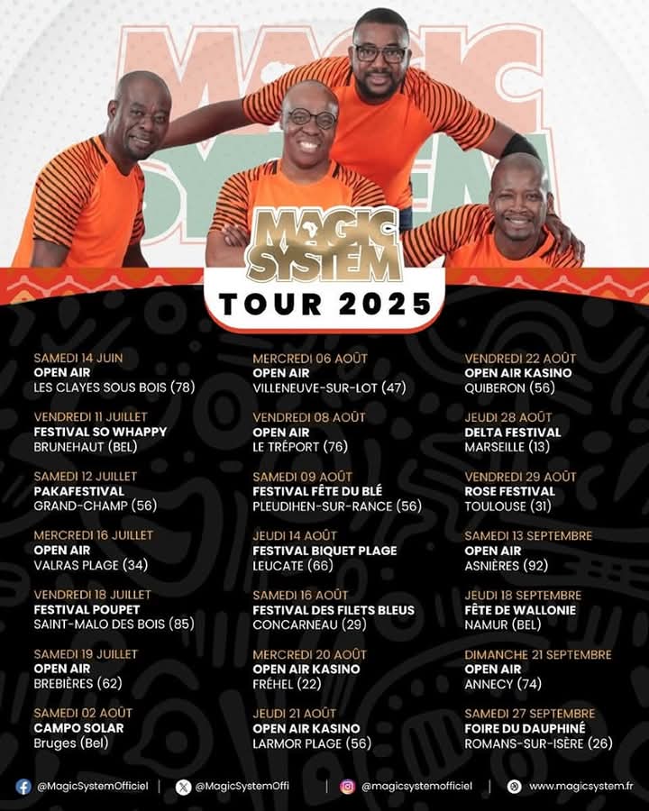 Le groupe Magic System dévoile son calendrier » TOUR 2025 «