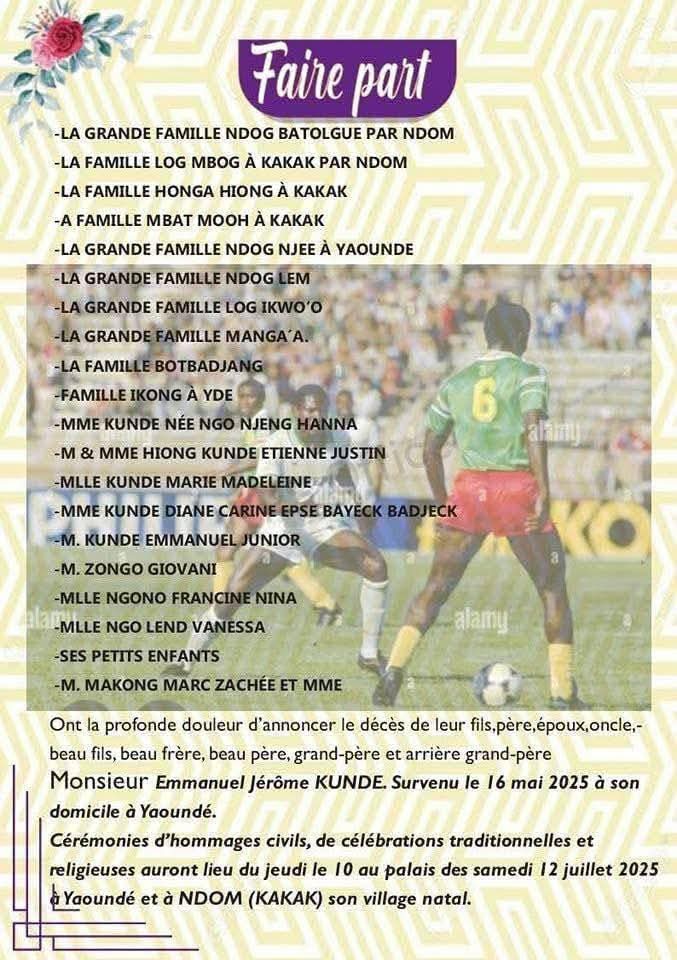 Le programme de célébration de vie de l’ancien Lion indomptable Emmanuel KUNDE est connu.