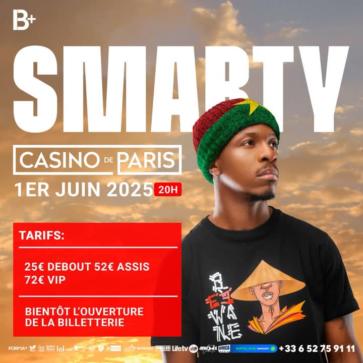L’artiste rappeur, Smarty sera sur la scène du Casino de Paris en juin 2025 .