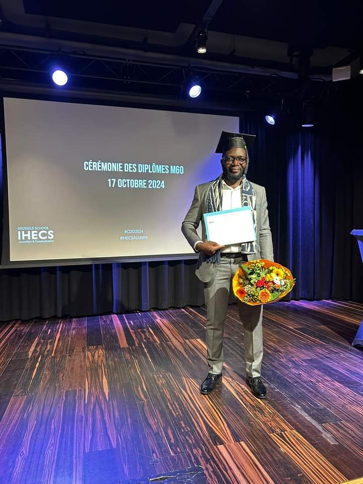 Master en presse et information de l’IHECS de Bruxelles obtenu avec Distinction en août 2024. Mémoire d’investigation sur le calvaire des étudiants africains en Belgique, avec les lourdeurs administratives et le système d’oppression dont ils sont victimes.