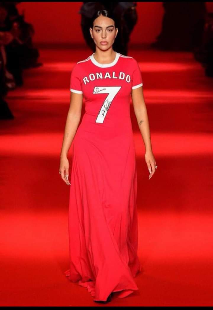 Lors de la Fashion Week de Paris, Georgina Rodriguez a défilé avec un maillot-robe au nom de son son compagnon, Cristiano Ronaldo.