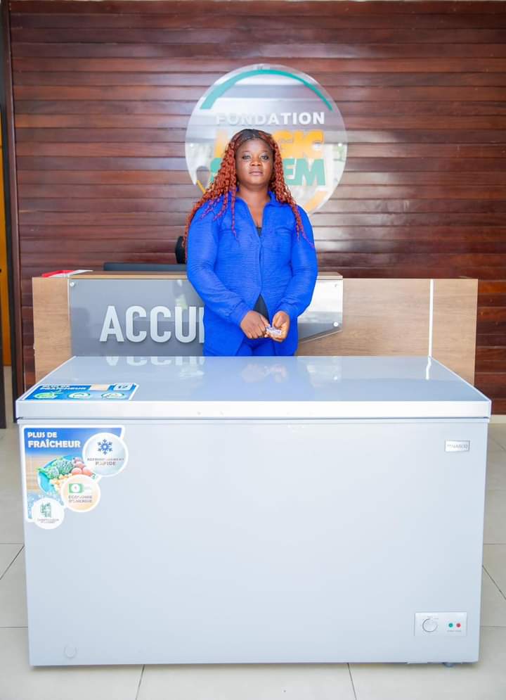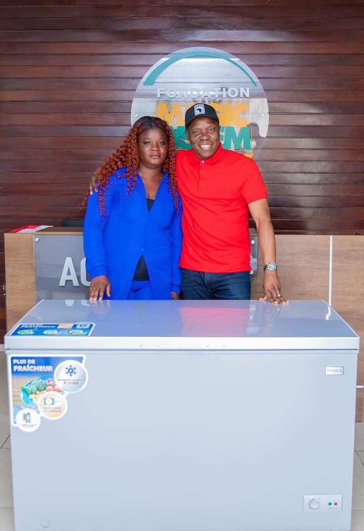 Chose promise, chose due mercredi, 16 octobre 2024 le Président de la Fondation Magic System, Salif TRAORE dit A’SALFO l’a reçu dans ses locaux pour lui remettre le congélateur qu’elle avait rêvé avoir. En plus de ce don matériel généreux Christelle, a reçu un petit appui financier pour développer son commerce.