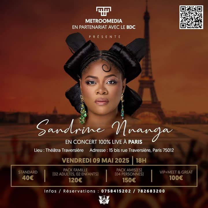Sandrine Nnanga vient d’annoncer son tout premier Concert à Paris le 9 Mai 2025. Le Théâtra Traversière situé à l’adresse 15 bis rue Traversière, Paris 75012.