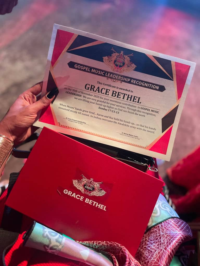 La jeune artiste gospel a partagé sur ses comptes sociaux officiels quelques clichés qu’elle avec son trophée. Lisez plutôt.