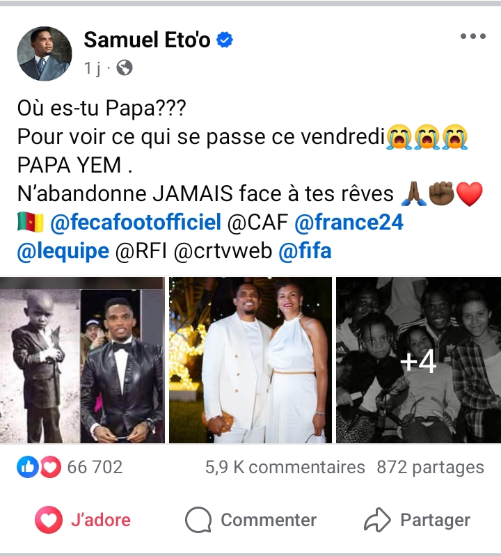 Le goaleador après cette bonne nouvelle à rendu hommage à son défunt père sur sur ses comptes sociaux officiels.
