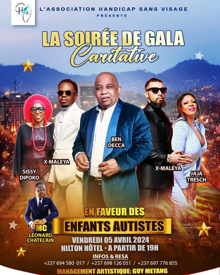 C’est dans cette lancée que la promotrice, par ailleurs Maman d’enfant autiste et animatrice télé démontre son amour en proposant un plateau artistique aussi riche que varié en style cette année c’est une affiche toujours plus audacieuse, un casting qui impose le respect. C’est la légende vivante du la musique camerounaise Ben Decca jeune qui aura l’insigne honneur de lancer les festivités de cette soirée qui s’annonce palpitante en émotion, avec à ses côtés la voix suave de Sissy Dipoko, et le mythique groupe X-maleya et bien d’autres artistes de la nouvelle génération. Si vous voulez vous laisser convaincre, regardez l’affiche intégrale.