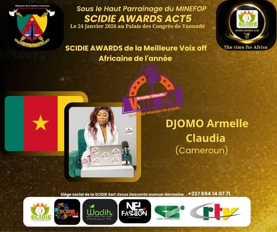 La compétition se refermera le 24 Janvier 2026, au Palais des Congrès de Yaoundé. Ce sera après une soirée de récompense. Le SCIDIE AWARDS (5ème édition) a pour but de valoriser le savoir-faire des entrepreneurs africains, dans de nombreux domaines, notamment l’agriculture, l’évènementiel. La Société Camerounaise pour l’Innovation et le Développement des Idées et des Entrepreneurs qui organise cet évènement propose cette fois-ci, de célébrer les talents africains dans le domaine de la voix, que ce soit en journalisme, podcasting, animation, narration…