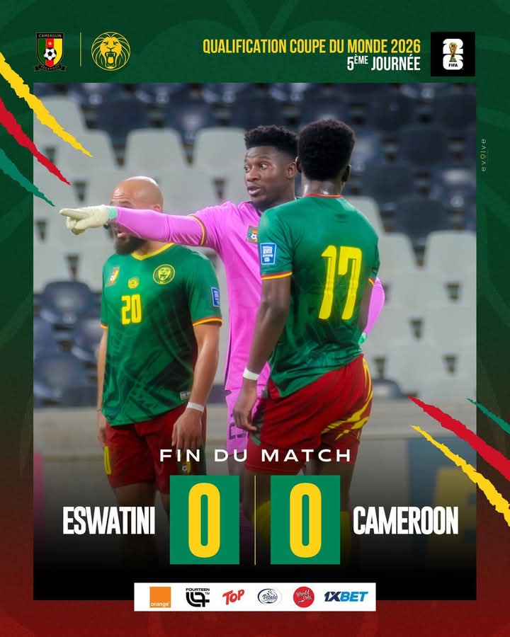 Lors de la 5ème journée des éliminatoires zone Afrique de la coupe du monde FIFA 2026 les Lions Indomptables ont été contraints à un partage de points ce mercredi soir à Nelspruit par « Les Boucliers du Roi » de l’Eswatini.
