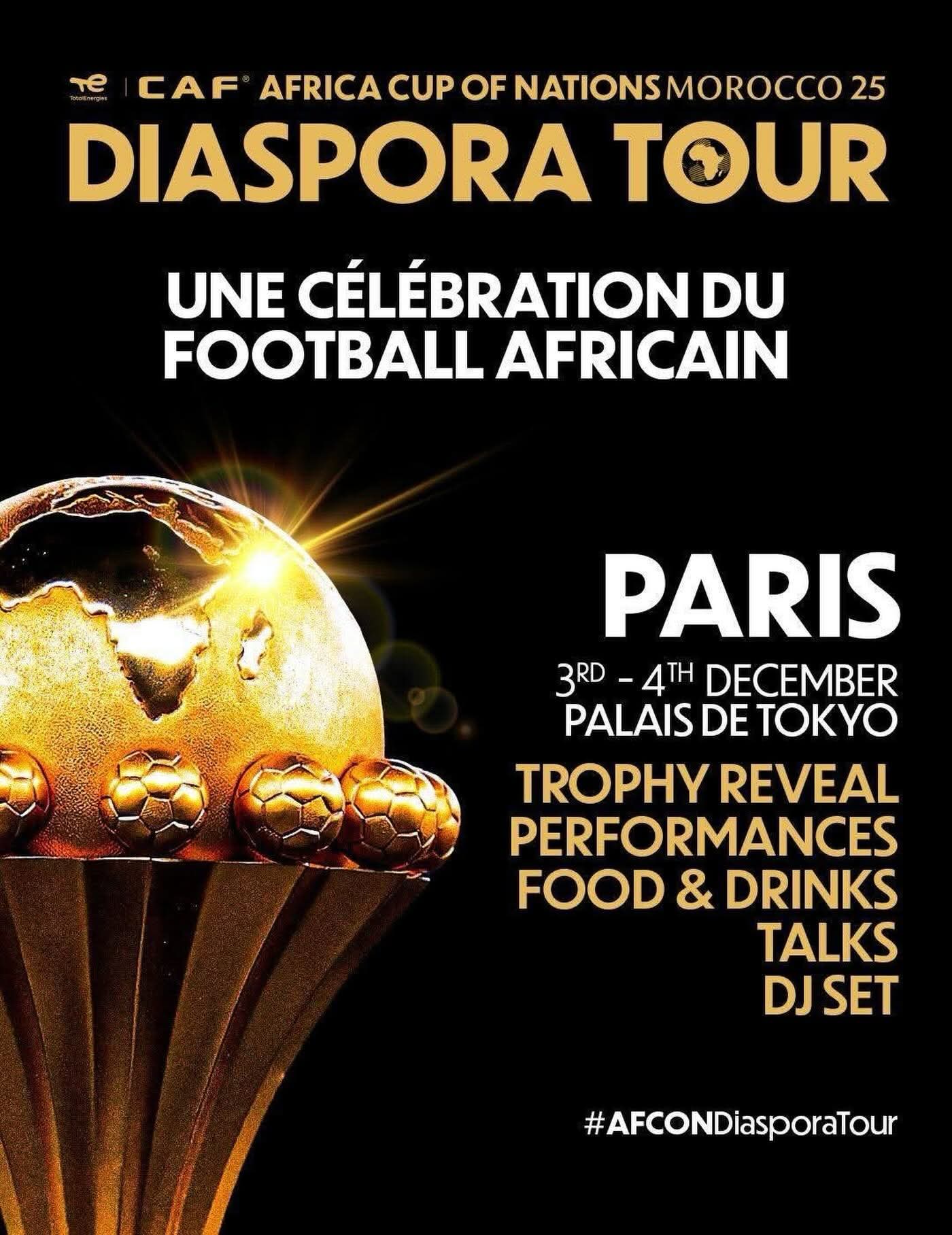 Après une première halte à Londres le trophée de la Coupe d’Afrique des Nations Total Énergies Maroc 2025 dépose ses valises en terre parisienne dans le cadre de sa tournée du trophée.