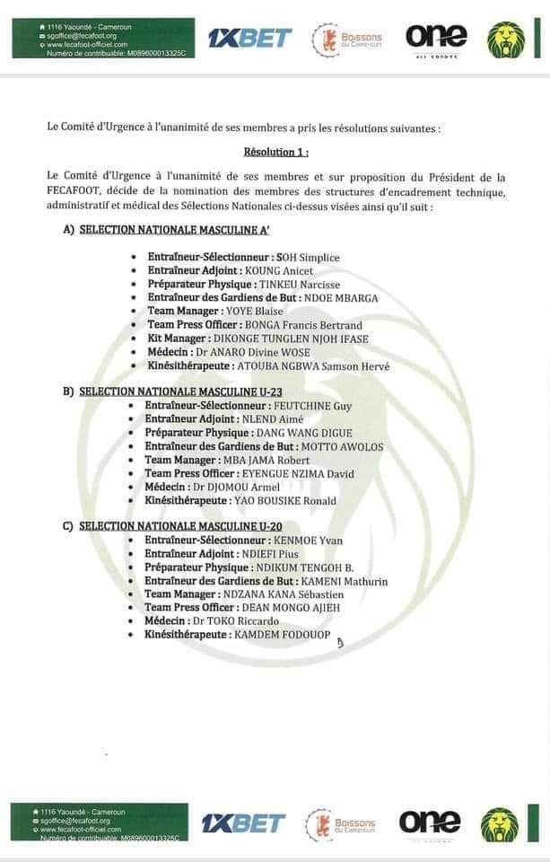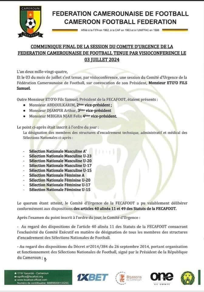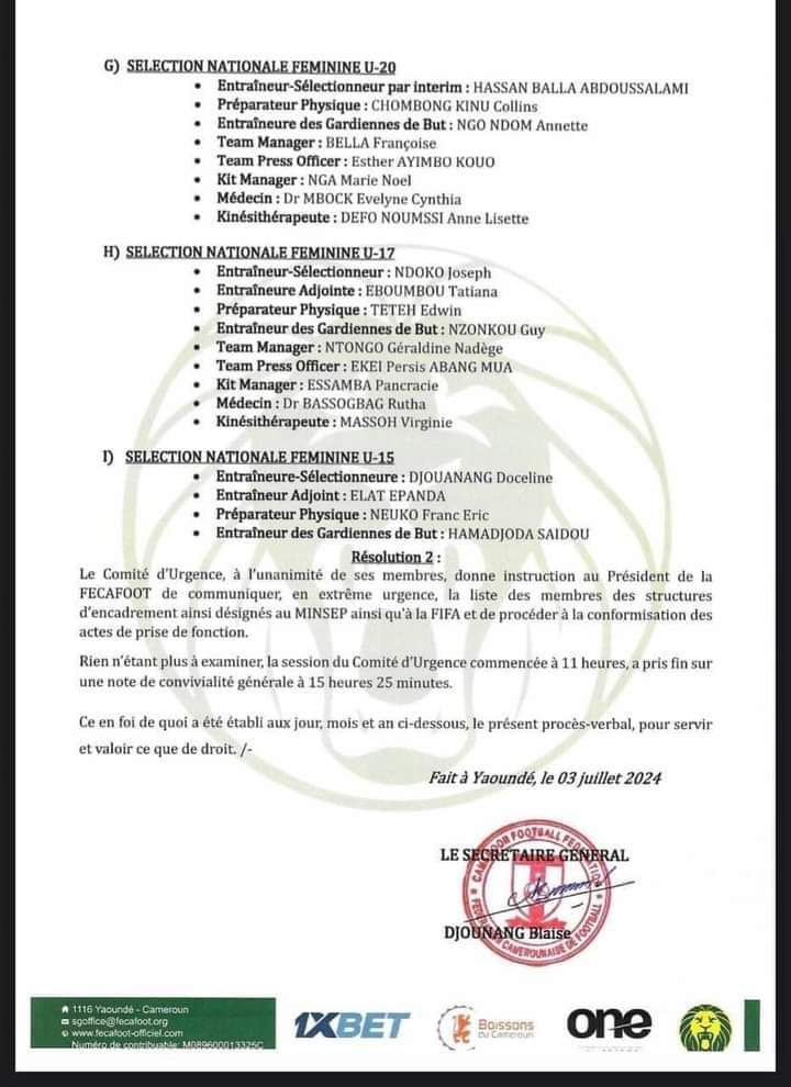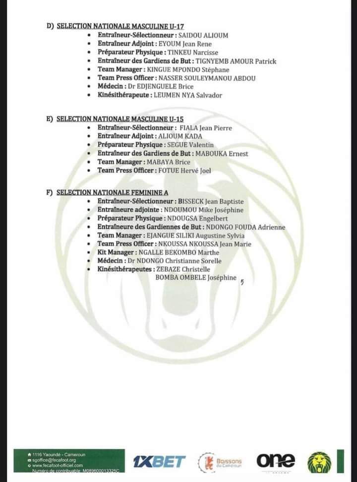 Des nominations au sein des sélections nationales camerounaise féminine et masculine.