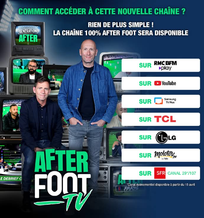 RMC lance After Foot TV, une déclinaison 100 % télé de son émission sportive culte et disponible sur la plateforme RMC BFM Play, les boxes SFR ou certaines télévisions connectées.