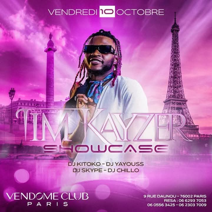 L’artiste chanteur TIM Kayzer annonce son premier show à l’hexagone. Si vous passez par Paris, plus précisément au Vendôme Club ne manquez pas ce show. Quatre DJ annoncés en l’occurrence @Dj Kitoko, Dj Chillo, Dj Skype et Dj Yayouss.